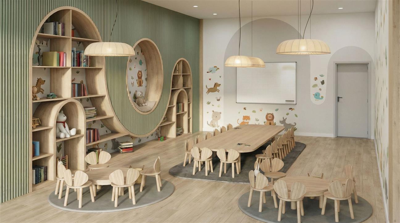 Eryamanda bulunan anaokulu projemiz yaklaşık 500 m2'lik alana sahiptir. Tasarımında kullanıcıların ihtiyaçları ve alan için gerekli fonksiyonlar, günümüz anaokulu standartları ve çocukların gelişimi için yapılan iç mimari stil araştırmalarına göre şekillenmiştir. Çocuklarımızın stresten uzak, barışçıl, gelişime açık ve güvenli bir alanda hissetmesi için gerekli malzeme-doku-renk seçimleri yapılmış, özellikle mobilya tasarımlarında çocuklarımızın güvenliği için ekstra özen gösterilmiştir.
